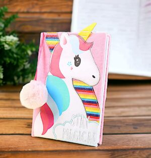 RIANZ Unicorn Diary, Faux Fur POM-POM Note book Ribbon...