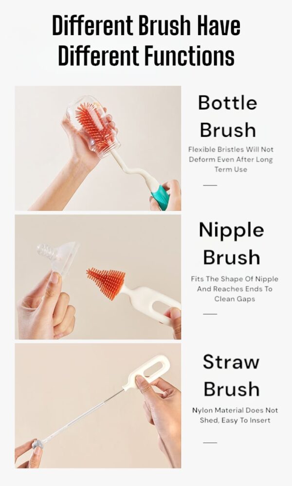 5. Compact and Travel-Friendly: Ideal for both home and travel, this compact brush set fits easily in a diaper bag or suitcase, making it perfect for parents on the go who want to ensure their baby’s items are always clean.