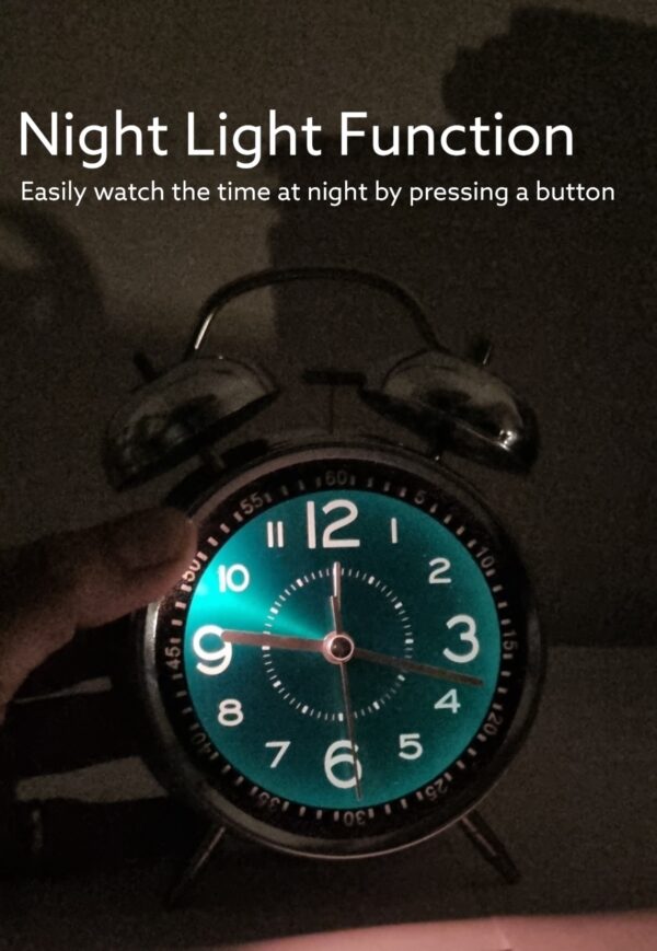 In summary, the RIANZ Steel Metal Twin Bell Alarm Clock seamlessly blends functionality with style. Its silent operation, convenient backlight, powerful alarm, easy usability, and retro allure make it an exceptional choice for anyone seeking a reliable wake-up companion. Treat yourself or surprise a loved one with this charming analog alarm clock, and embrace classic design coupled with dependable performance in your daily routine. Start your mornings off right with the RIANZ Steel Metal Twin Bell Alarm Clock.